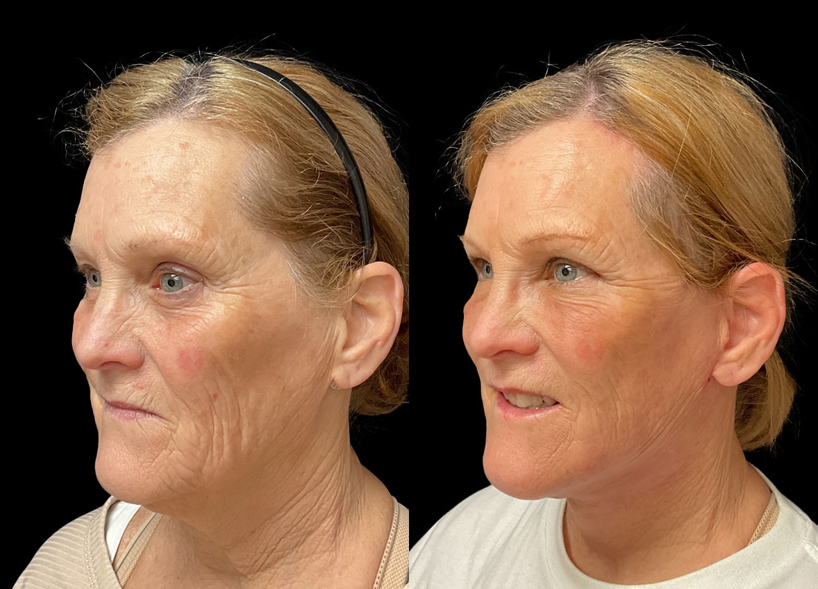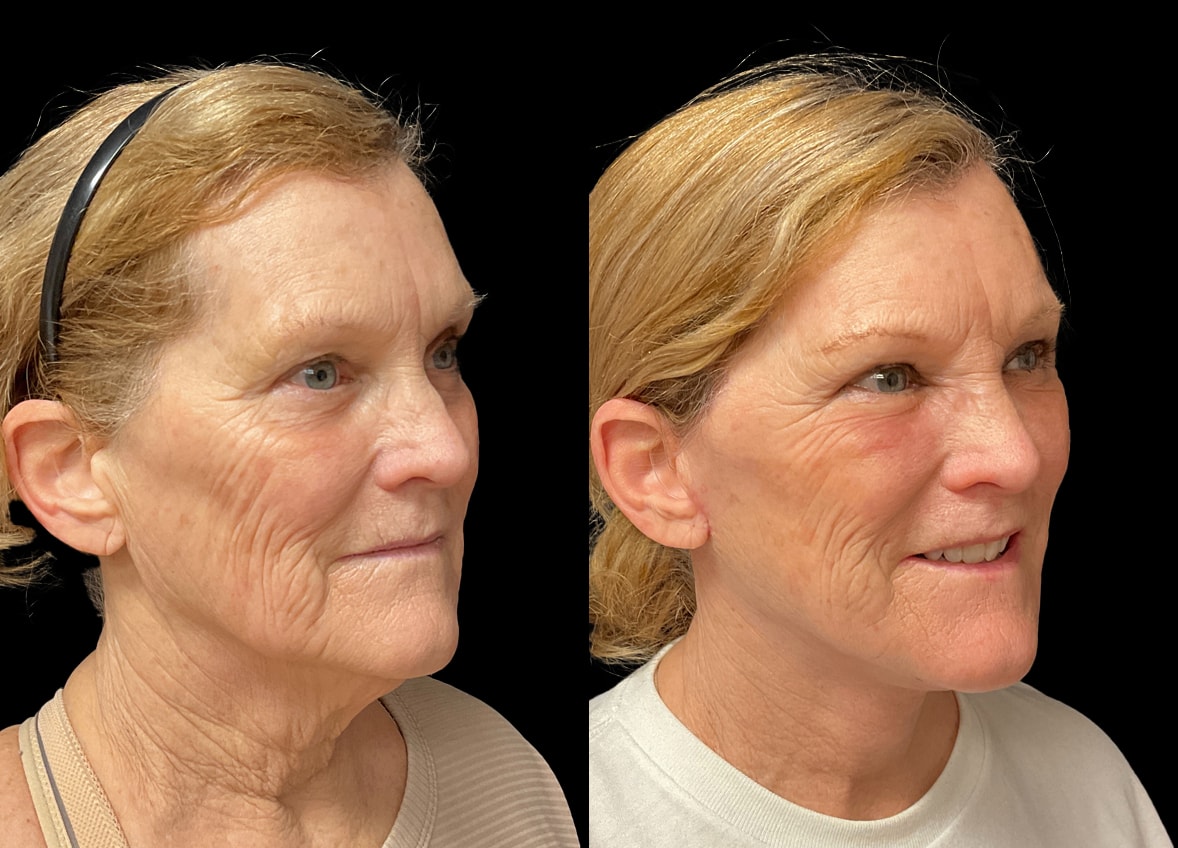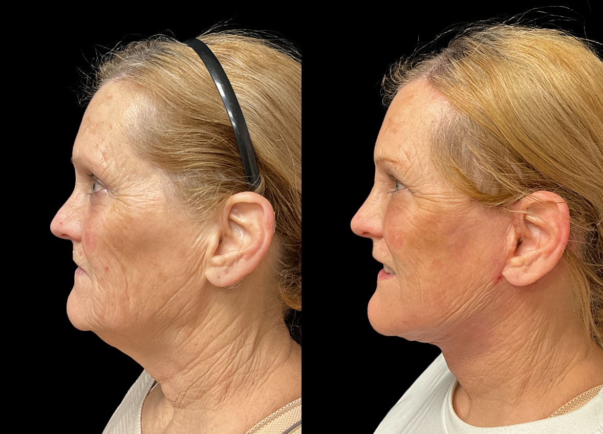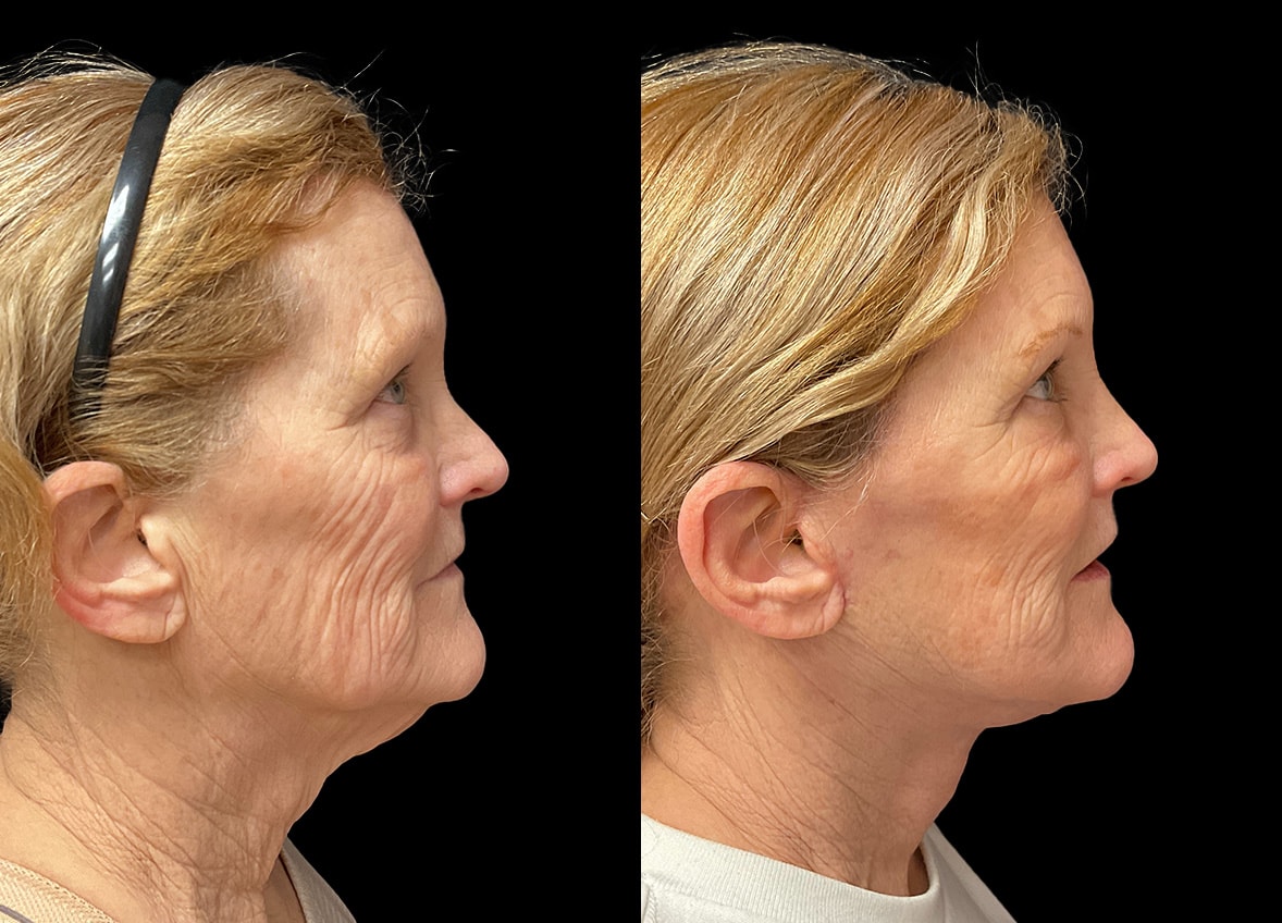 This patient, a woman in her late sixties, presented with significant photodamage to her facial skin and expressed a desire for a more refreshed and youthful appearance. To address these concerns, Dr. Dorafshar recommended and expertly performed a comprehensive surgical rejuvenation. The procedure involved a deep plane facelift, a sophisticated technique designed to address laxity in the deeper facial tissues, resulting in a more natural and long-lasting tightening effect. In conjunction with the facelift, a neck lift was performed to refine the contours of the neck and improve the definition of the jawline. To further enhance the patient’s appearance, liposculpture was utilized to address areas of unwanted fat, and fat grafting was strategically employed to restore lost volume and improve facial contours, ultimately achieving a beautiful, refreshed, and significantly rejuvenated outcome.