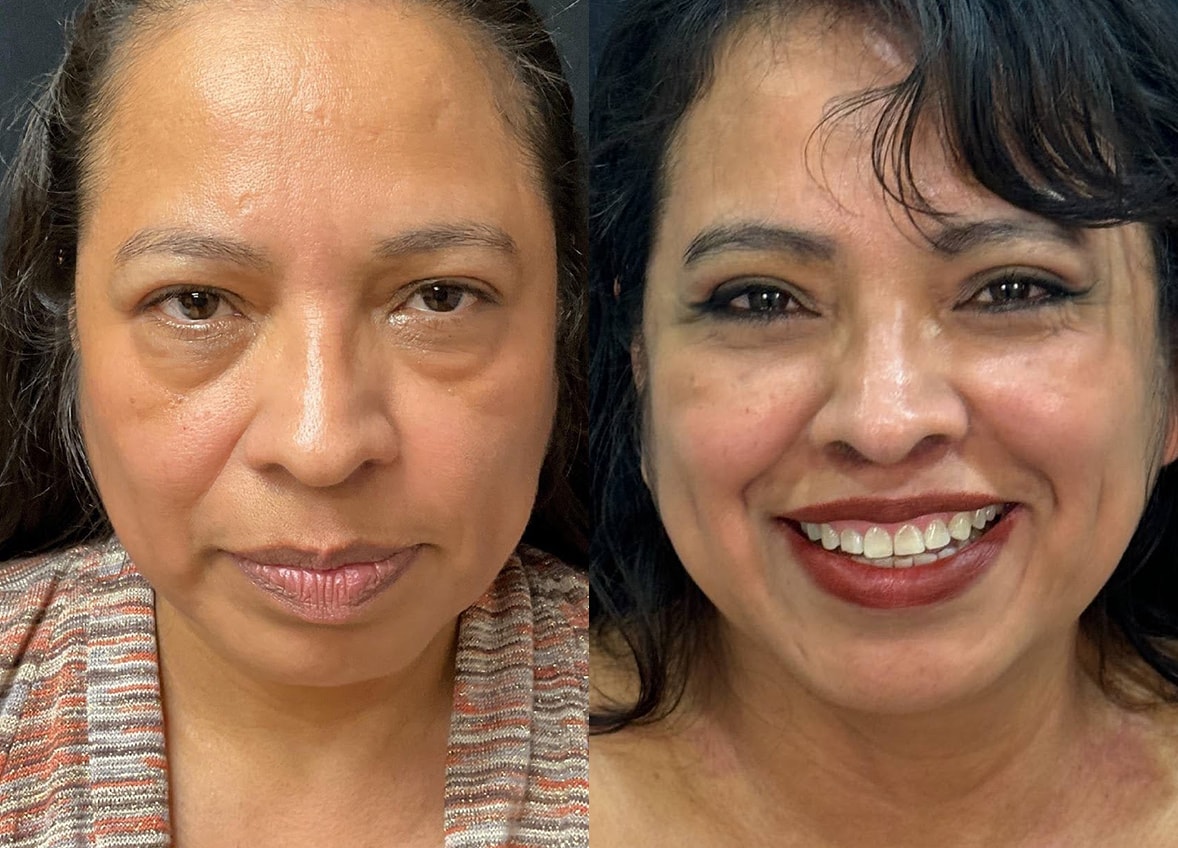 A Hispanic female patient presented with concerns regarding the appearance of her lower lip, which she believed contributed to an aged facial aesthetic. Her primary goal was to achieve a more youthful appearance through a lip lift procedure. Dr. Dorafshar conducted an in-office surgical intervention to address this concern. The procedure involved meticulously creating an incision along the natural crease just beneath the patient’s nose. This strategic placement of the incision is designed to optimize camouflage and minimize the visibility of any postoperative scarring. The core objective of this surgical technique was to shorten the vertical length of the skin above the upper lip, thereby creating a more balanced and youthful proportion between the upper and lower lips.