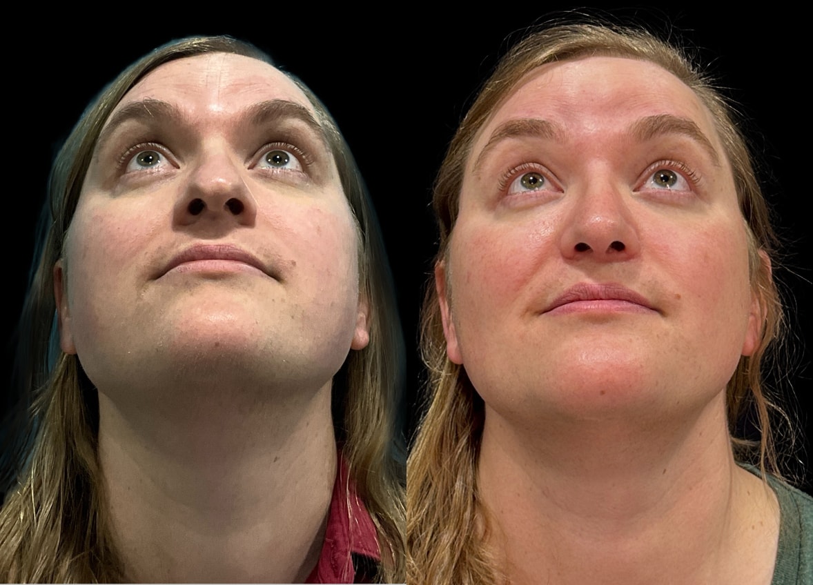 In the postoperative period, the patient expressed profound satisfaction with the results. She was particularly delighted with how her eyes “opened up,” a transformative change that significantly contributed to her feeling more congruent with her gender identity. The aesthetic refinements allowed her to “pass” more seamlessly in public, experiencing a marked decrease in instances of her gender being questioned. This newfound sense of acceptance and alignment with her true self greatly enhanced her quality of life and self-confidence.