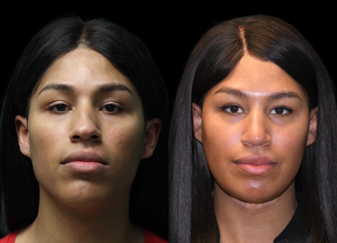 This transfeminine patient sought consultation for gender dysphoria specifically related to facial features perceived as masculine. Her primary concerns focused on the appearance of her nose, chin, and the prominence of her Adam’s apple. Following a comprehensive consultation with Dr. Dorafshar, a personalized surgical plan was developed to address these concerns and achieve a more feminized facial aesthetic. The patient elected to proceed with a multi-procedure approach, including an open rhinoplasty, genioplasty, and mandibular contouring.