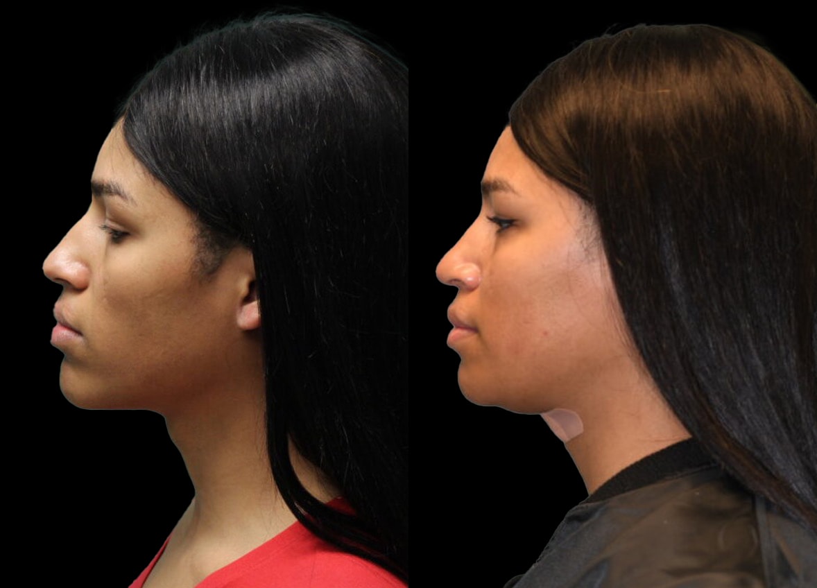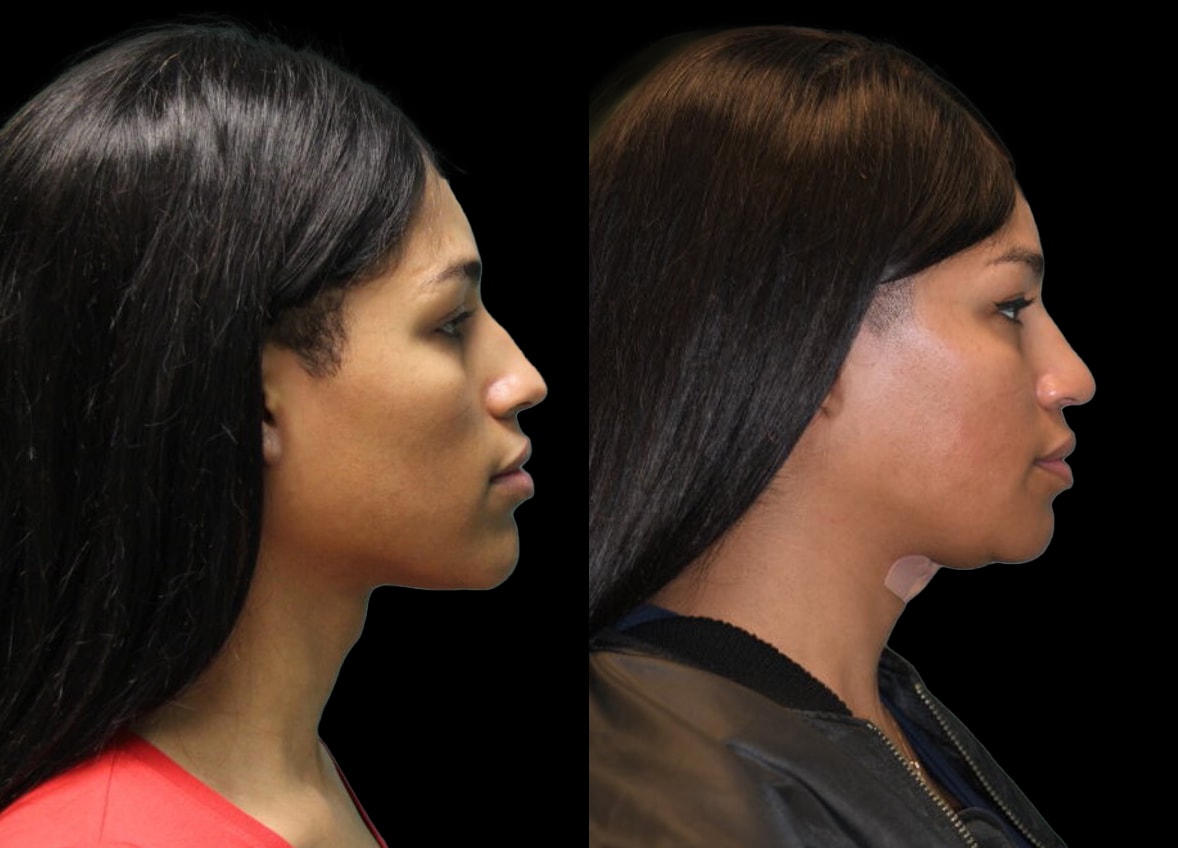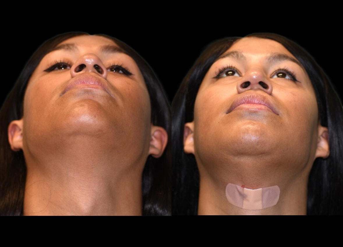 In addition to these procedures, the patient underwent a tracheal shave. This was performed through a small, strategically placed incision within the submental crease. This approach effectively minimized the visibility of the scar, contributing to an optimal aesthetic outcome and addressing the patient’s concern regarding the prominence of her Adam’s apple.