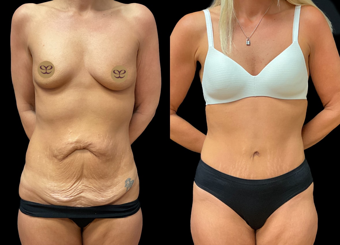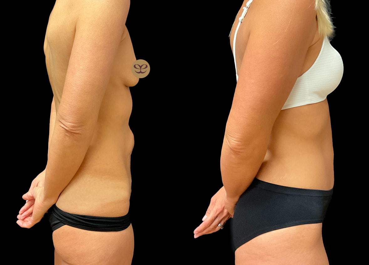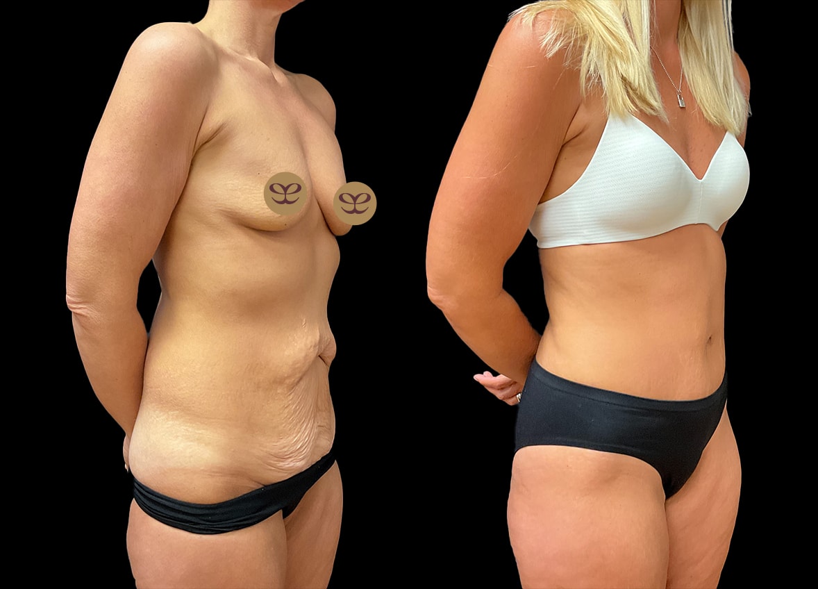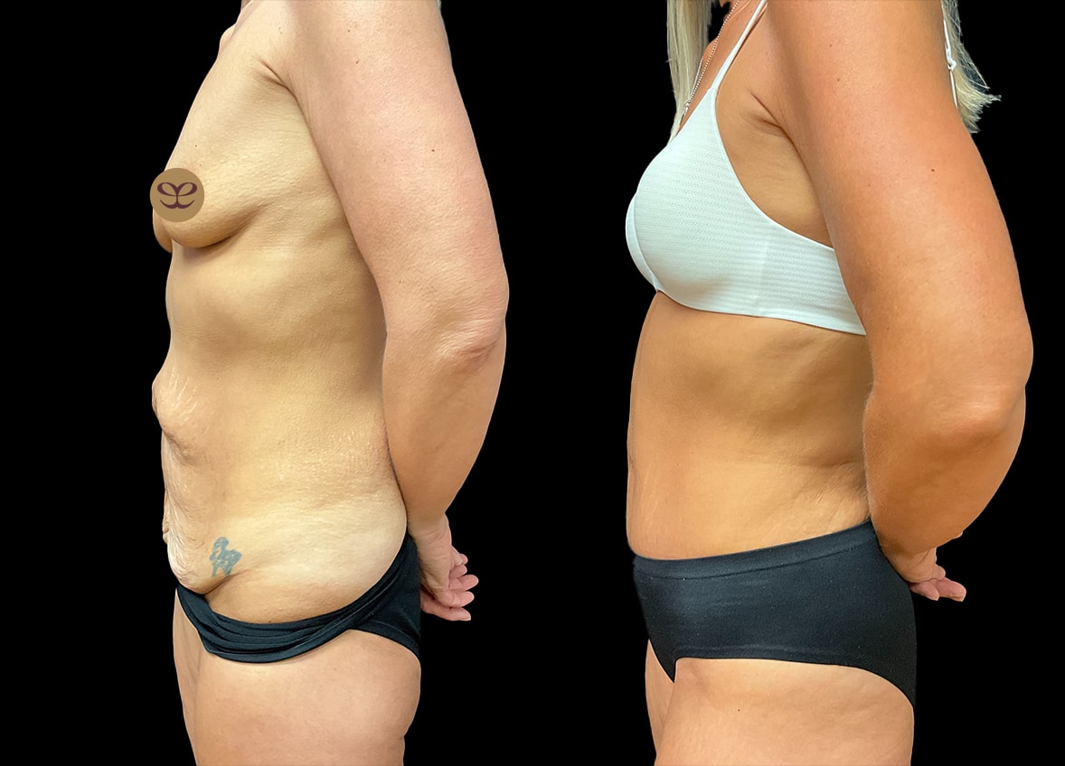 Following this patient’s weight loss journey, she presented with a considerable amount of excess skin and residual fat, particularly in the abdominal region, which can be a common concern after substantial weight fluctuations. To address these concerns and further enhance her appearance and self-esteem, she underwent a combined surgical procedure consisting of an abdominoplasty and liposuction.